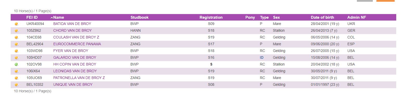 mare, out off the same motherline as COPIN vd Broy / UNIQUE vd Broy / PATRONELLA vd Broy / FYER vd Broy / TOY BOY / CONTREX vd Broy